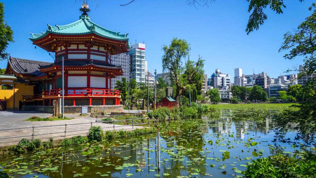 Traditionally, Ueno is known for its ornate temples and shrines, such as the 17th century Benzaiten, built on an island in Shinobazu Pond in Ueno Park. Cultural facilities in the park include the Tokyo National Museum, which displays Japanese artifacts, and the National Museum of Western Art, which houses works by modern masters such as Van Gogh and Picasso. The nearby outdoor market, Ameya Yokocho, sells a wide variety of food, clothing, and accessories.