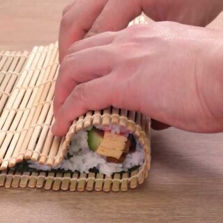 Sushi made by wrapping rice and ingredients with seaweed by hand without using a makisu.