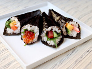 手巻き寿司 "Temakizushi" hand-rolled sushi, usually cone-shaped