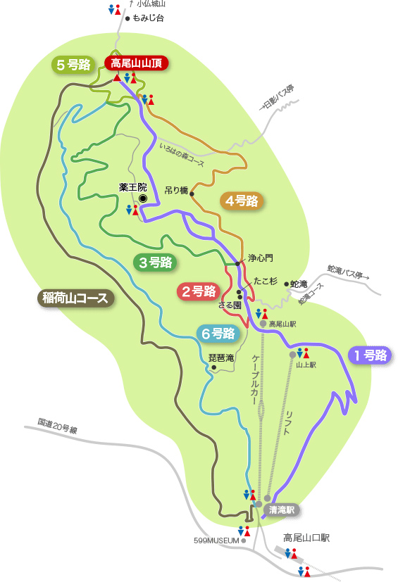 Takaosan is a 599 meter (m) high mountain located in Hachioji City, Tokyo. It is located in the Meiji-no-mori Takao National Park and the Tokyo Metropolitan Takao Jinba Nature Park. Located close to central Tokyo, the mountain is visited by many tourists and climbers throughout the year. It has long been considered a sacred mountain for Shugendo (mountain asceticism).